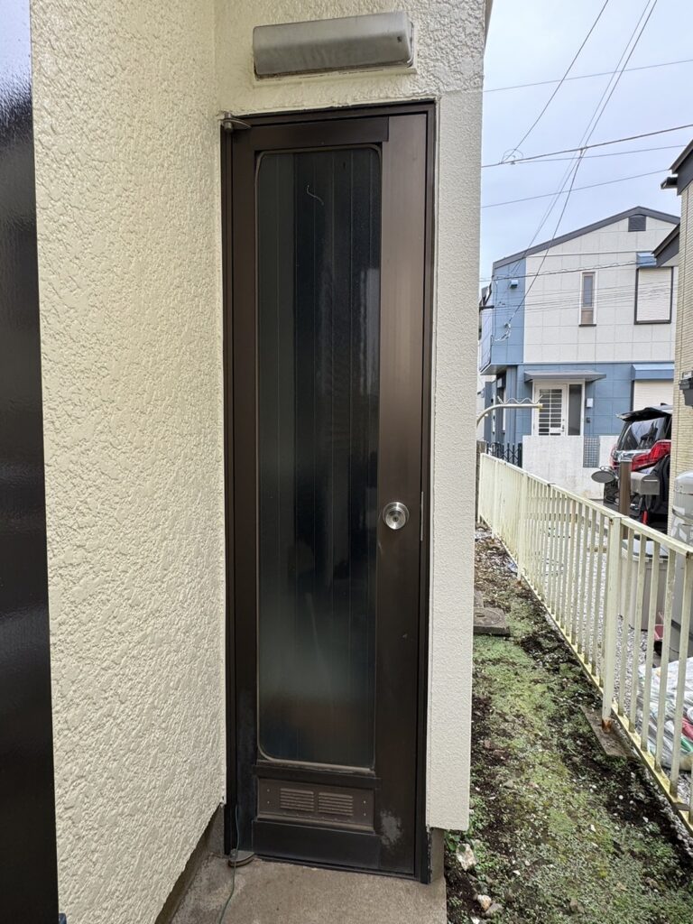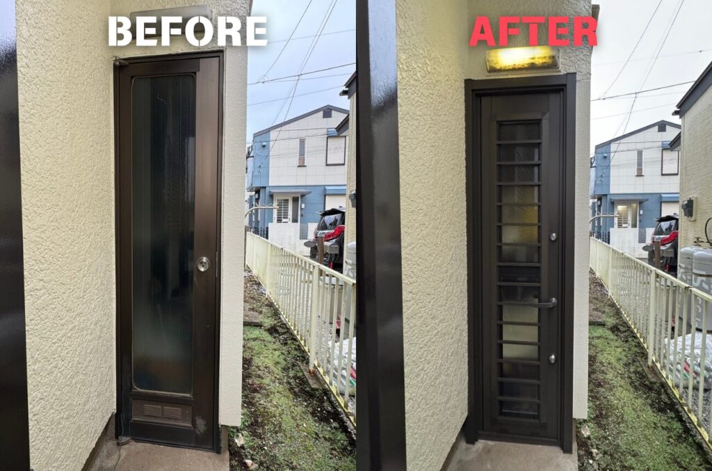 隙間風やドアノブの使い勝手の悪さに悩まされていたとのことで、ドアを取り替えることになりました。