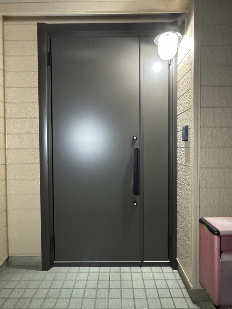 リシェントの取付け工事は、既存のドア枠に新しいドアを枠ごと取り付けるカバー工法によって取り付けられる為